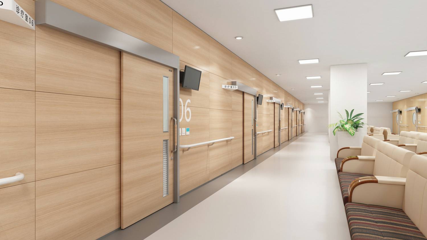 产品种类已覆盖医用钢质门、医用推拉门、室内门、防火门、钢质墙板、钢质空间隔断、金属吊顶等。从接待处到ICU,从化验室到手术室,从病房到行政办公,我们为医院空间环境设计研发多年的产品覆盖各类医院的特定需求..
